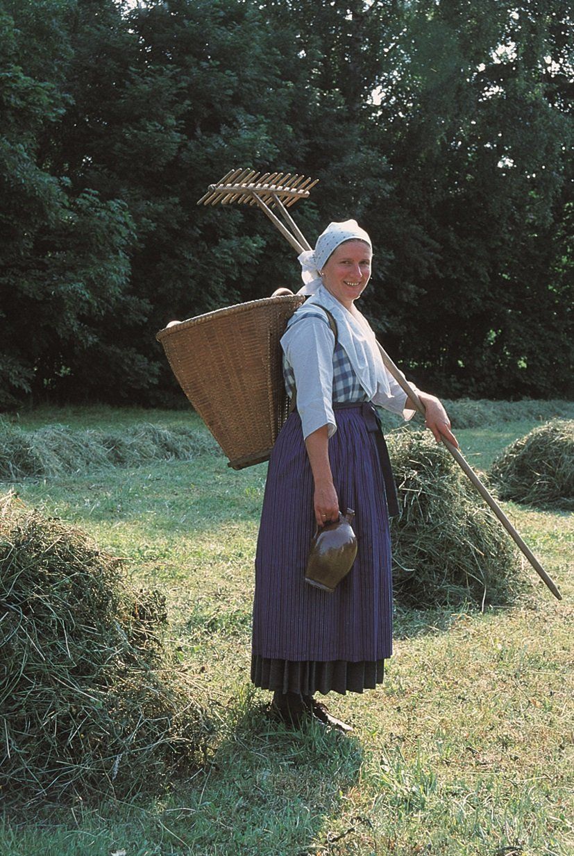 Eine leichte Arbeitsschürze diente nicht nur zur Zierde, sondern wurde auch zum Transport von Alltagsgenständen benutzt.