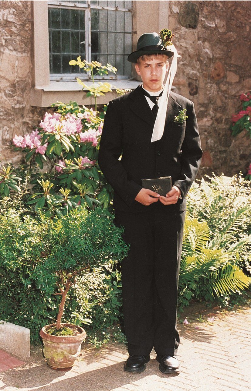 Die Jungen erhielten den ersten blauen oder schwarzen Anzug, teilweise mit Weste.